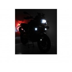 Découpé au laser dans de l'acier et couvert d'un revêtement noir, ce support léger est à la fois solide et attrayant. Le kit permet d'installer n'importe quel éclairage LED Denali sur votre moto.