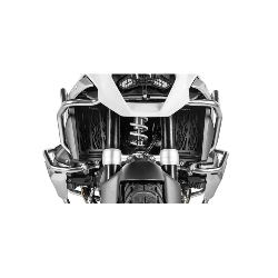 Malgré le diamètre impressionnant des tubes en acier inoxydable de 25x2 mm, l’extension est montée aussi près et symétriquement que possible de l’axe du véhicule. Il n’a aucune influence sur l’angle d’inclinaison ou la garde au sol. L’extension de la barre de protection s’intègre harmonieusement dans l’apparence générale de la 1300 et devient ainsi visuellement une partie de la moto.