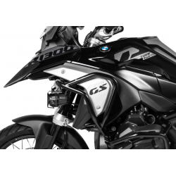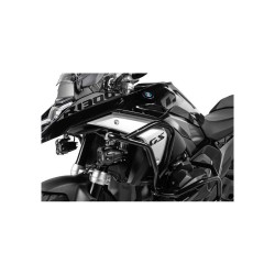 Les plaques en forme de 3D de la barre de sécurité du moteur Touratech protègent la zone avant particulièrement vulnérable du couvercle de soupape et la fixent à l’avant et sur le côté. En même temps, il s’intègre parfaitement dans le nouveau langage de conception plus plat du grand « GS » et fait également de la barre de protection du moteur une partie visuelle de la moto.