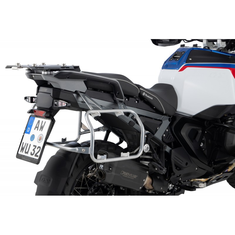 Qu'est-ce qui rend ce porte-bagages spécifique au modèle pour la nouvelle BMW R 1300 GS Adventure si polyvalent ? Il est conçu pour accueillir soit les valises en aluminium BMW d'origine avec découpe pour le silencieux, soit les valises EXTREME slimline ou regular de la populaire série de bagages Wunderlich.